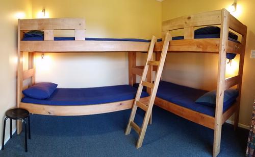 Our backpacker rooms have a double bunk with a double on the bottom and a single above. There is a small table and 2 chairs and heater. Guests bring their own bed linen and share the camp kitchen and bathroom facilities. Price from: $50.00 per night for 1 person Maximum occupancy: 3 person/s Bedding configuration: Double and single bunk. |